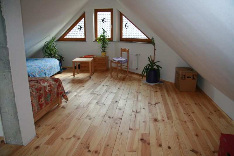 Äste und etliche kleine Längsharzgallen bis max. 1x5 cm . Einige Mark- und Hirnrisse sind üblich. Der französische Hersteller klassifiziert diese Dielen als A/B -Qualität.